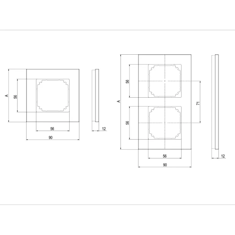 Tarkka yhdistelmäkehys kiinteää lasia upotettavaan asennukseen IP20. Pystysuoraan tai vaakasuoraan asennukseen.