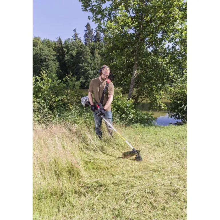 Täydellinen yhdistelmäkone lisävarusteilla, kuten ruohoterällä, lankakelalla, ketjusahalla ja pensasleikkurilla. Mukana myös 80 cm:n jatkovarsi.