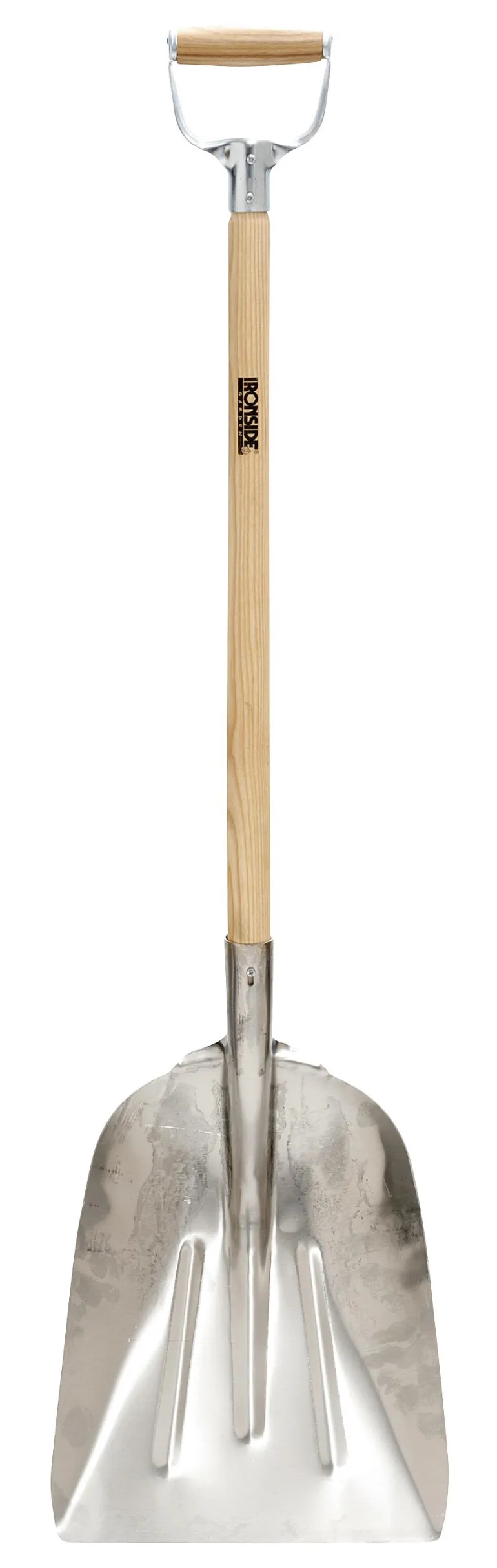 Lumilapion työleveys 33 cm ja pituus 123cm. Karkaistua alumiinia, puuvarsi.