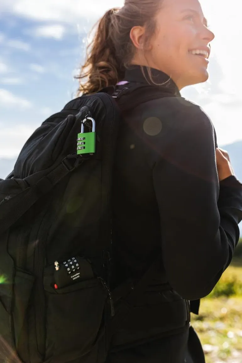 Yhdistelmälukko 40 mm massiivista alumiinia. Toimii nelinumeroisella koodilla, joka voidaan valita vapaasti. Lukkoa on kätevä käyttää ja helppo löytää voimakkaiden värien ansiosta.