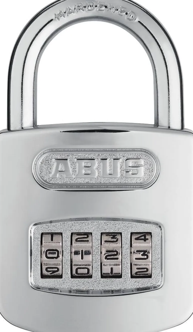 ABUS Prestige Code 160/50 on yhdistelmälukko, jossa on neljä rullaa nelinumeroiselle koodille, joka voidaan valita vapaasti. Lukko koostuu lukitusrungosta, jossa on kiiltävä kromipinnoite, ja sanka, joka on valmistettu karkaistusta teräksestä. Täydellinen keskikokoisten esineiden lukitsemiseen ja keskimääräisellä varkausriskillä. ABUS -yhdistelmälukko 160 sopii ovien, porttien, kaappien, kytkentälaitteiden ja vastaavien lukitsemiseen, jotka on suojattava varkaudelta tai estää luvaton pääsy. Riippulukkoa käytetään numerokoodilla avaimen sijasta.