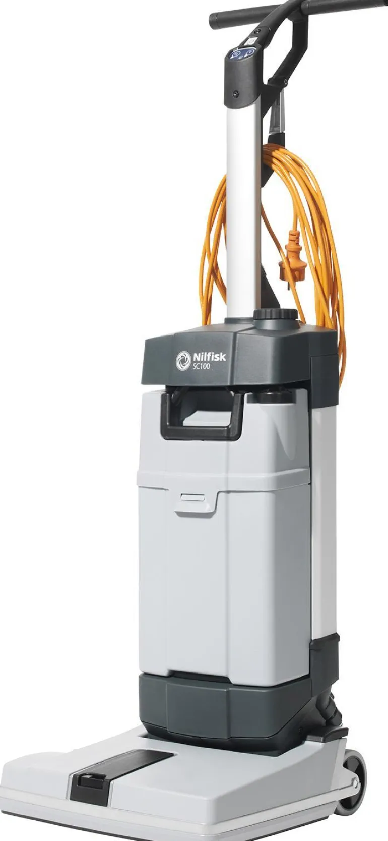 Nilfik SC100 E Premium on kompakti kombipesuri pienten alueiden puhdistamiseen. Verrattuna manuaaliseen puhdistukseen mopilla, tämä kompakti, pystysuora kombipesuri hoitaa puhdistustehtävät paljon nopeammin ja paremmilla tuloksilla.