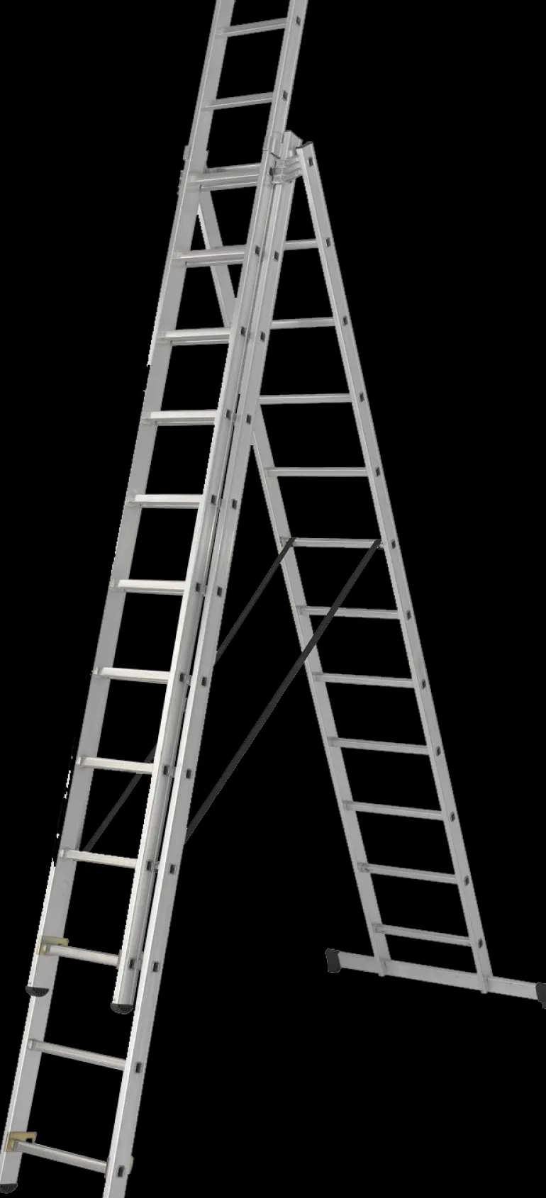 Ammattikäyttöön suunnitellut yhdistelmätikkaat vaakatuella. Tukevat alumiiniprofiilit. Yhdistelmätikkaita voidaan käyttää jatkotikkaina tai vapaasti seisovina tikkaina.