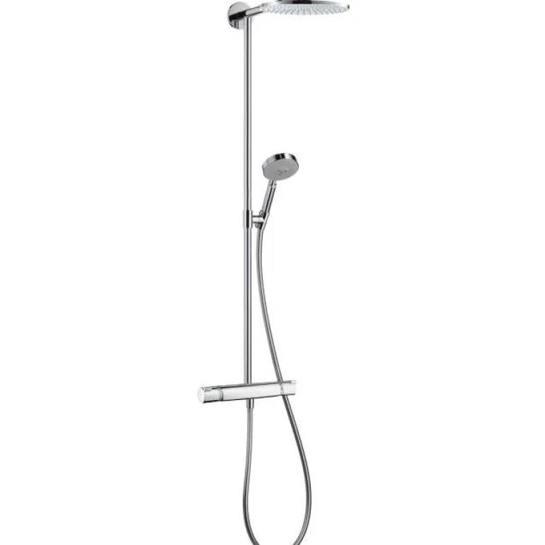 Hansgrohe Raindance S on suihkusarja. Sisältää yläsuihku Raindance S 240 Air, käsisuihku Raindance S 100 AIR 3 Jet, termostaattinen suihkuhana, suihkuletku ja liuku. Termostaatti Ecostat Comfort ja täysin kromattu suihkusiivilä.