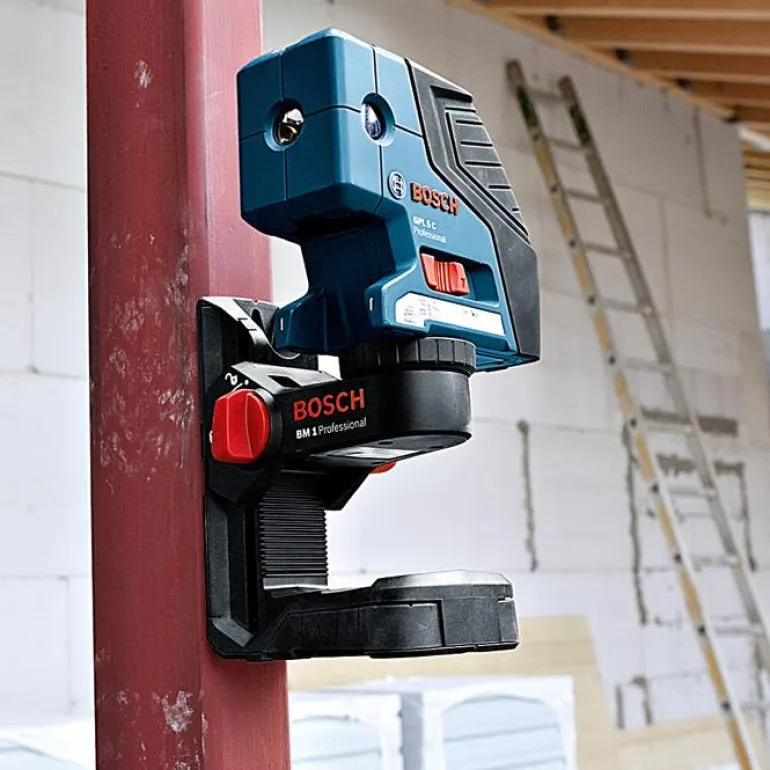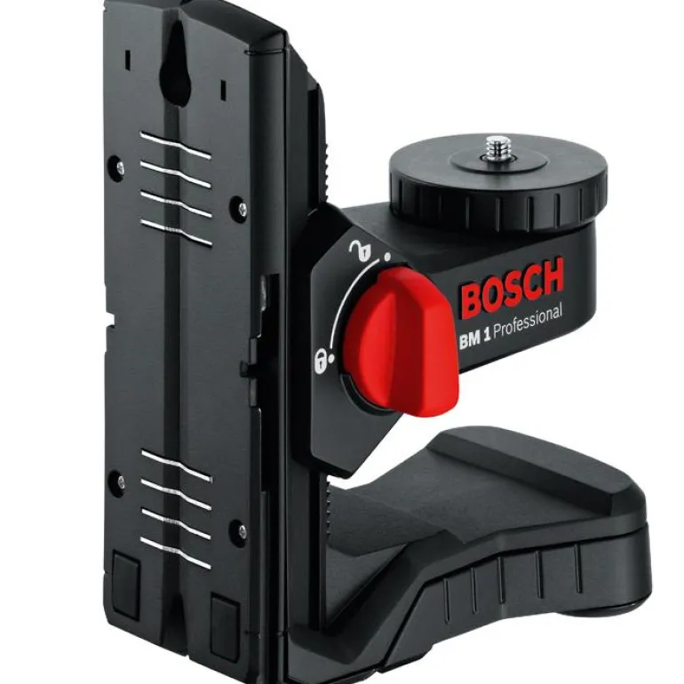 Bosch BM 1 Professional on yleispidike, joka sopii kaikille laitteille 1/4″ kierteellä Yleiskiinnike on käytännöllinen, ja korkeuden säätö sujuu näppärästi.