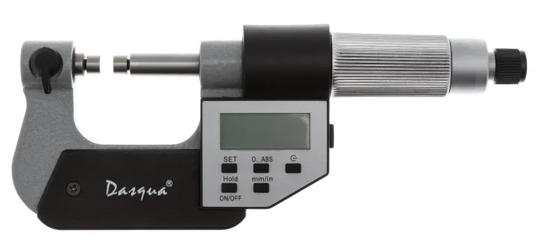 Dasqua 509517 on digitaalinen yleiskäyttöinen kaarimikrometri absoluuttisella ja inkrementaalisella mittaustoiminnolla millimetreissä ja tuumissa. Mikrometrissä myös toiminnot toleranssille ja esiasetukselle. Sisältää 7 paria vaihdettavia mittauskärkiä.