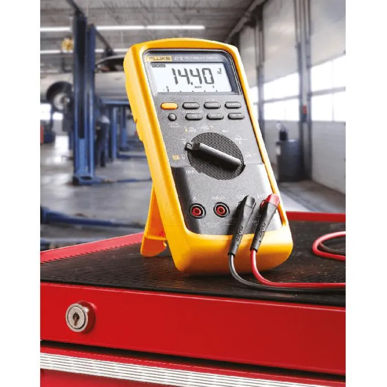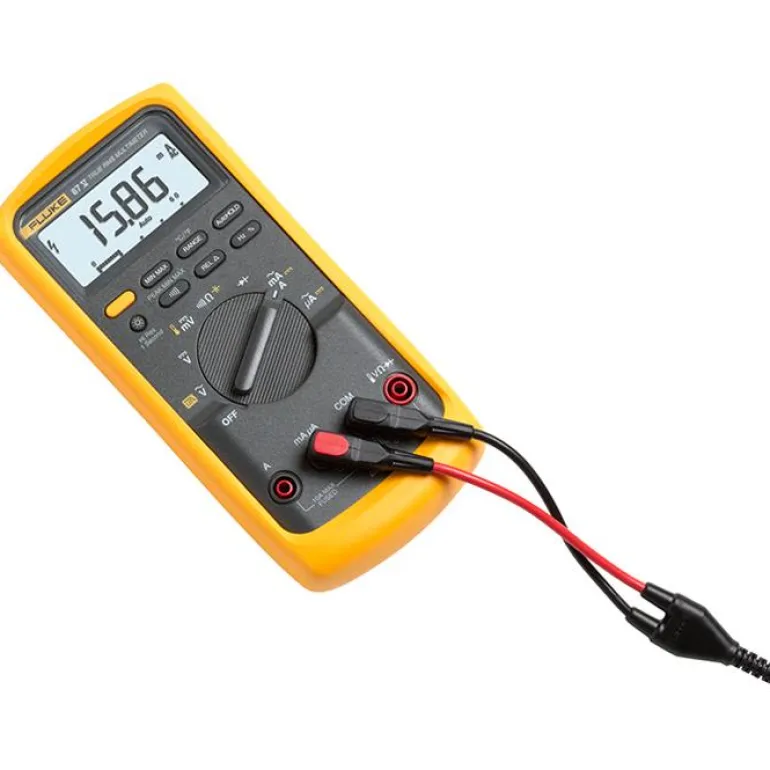 87 V:n yleismittari teollisuuskäyttöön, True-RMS. Yleismittarin enimmäisjännite on 1000 V AC/DC, ja se sopii säädettävien moottoriohjaimien ja muiden sähköisiä häiriöitä aiheuttavien laitteiden tarkkoihin jännitteen ja taajuuden mittaukseen. Sisäänrakennettu lämpömittari.