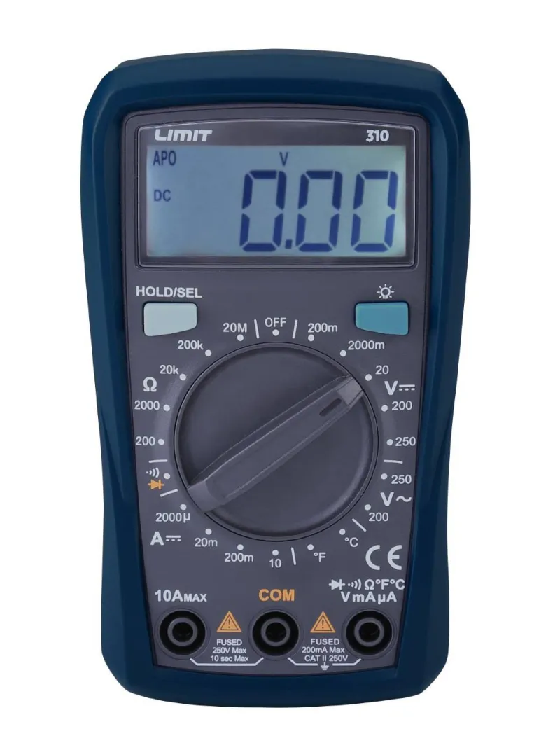 Helppokäyttöinen ja ergonomisesti suunniteltu digitaalinen yleismittari suurella ja selkeällä näytöllä. Tasa-/vaihtojännitteen, tasavirran, resistanssin ja lämpötilan mittaamiseen. Lisäksi dioditesti, jatkuvuustesti summerilla, tietojen pito, taustavalo ja akun kapasiteetin varoitus. Varustettu kumisella kotelolla ja aukitaitettavalla tuella. Asteikon pituus 1999. Turvallisuusluokitus CAT II 250V standardin IEC 61010 mukaisesti. Varmistettu enint. 250 V:iin 10 sekunnissa ja 200 mA.