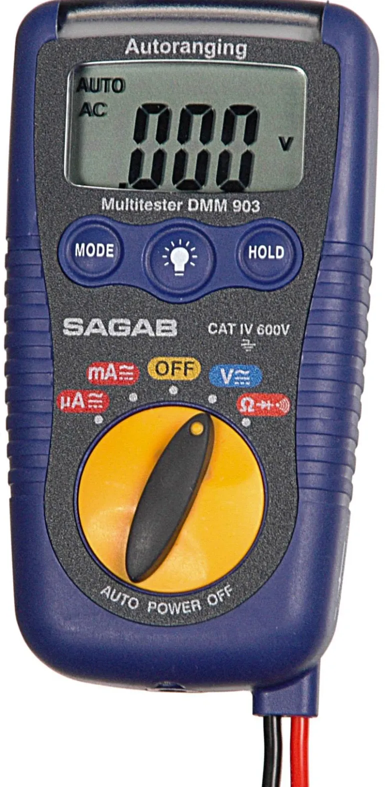SAGAB DMM-903 on erittäin kätevä yleismittari. Pienestä koosta huolimatta laitteessa on erittäin korkea turvaluokitus; CAT IV 600V, CAT III 1000V. Suojaus vääriltä kytkennöiltä automaattisella nollauksella varustetulla elektronisella sulakkeella.
