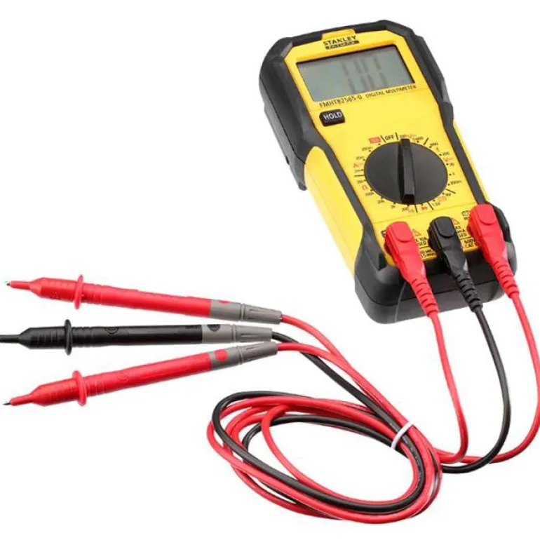 Yleismittari, AC/DC 600 V, jatkuvuus <30Ω. Manuaalinen asetus mittausalueen tyypille ja toiminto paristojen testaamiseen.