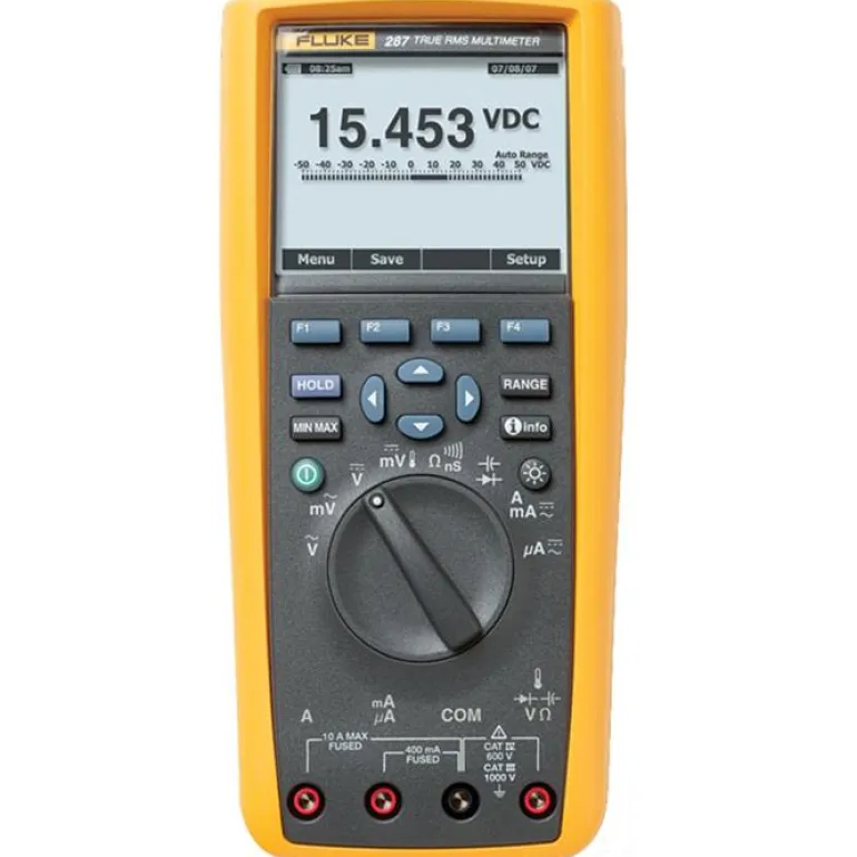 Fluke 287 EUR on yleismittari, jossa on True-RMS-datan kirjaustoiminto. Dokumentoi nopeasti suorituskyvyn ja näyttää tapahtumat graafisesti. Ainutlaatuisten loki- ja kaaviopiirrosominaisuuksien ansiosta sinun ei enää tarvitse siirtää tallennettuja tietoja tietokoneellesi trendien tunnistamista varten. Yhteensopiva Fluke Connect -mobiilisovelluksen ja kaikkien Fluke FC -yhteensopivien testityökalujen kanssa ir3000 FC IR-yhteydellä.