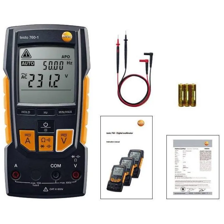 Testo 760-1 on digitaalinen yleismittari toimintopainikkeilla, jotka korvaavat perinteisen kiertokytkimen. Tämä helpottaa käyttöä ja parantaa luotettavuutta. Virheet ovat nyt mahdottomia, koska mittausparametrit havaitaan automaattisesti ja kytketään oikeaan mittausliitäntään. Lisäksi kyseiseen toimintopainikkeeseen syttyy valo. Testo 760-1 on varustettu suurella taustavalaistulla näytöllä, jonka jännitealue on 0,1 mV – 600 V ja virta-alue 1 mA – 10 A. Sopii käytettäväksi ympäristöissä, joissa lämpötila on -10 … +50 °C. Yleismittari 760-1:n koko on 167 x 84 x 45 mm (P x L x K).