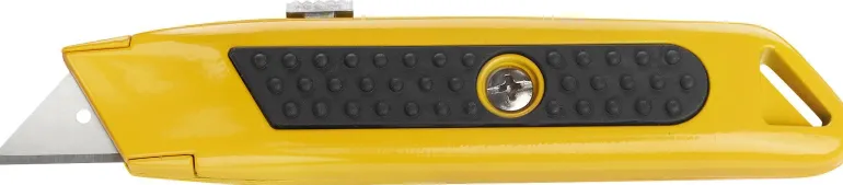 Maalattua metallia, kuminen otepinta. Ulos liukuva terä. Pituus 150mm. Mukana kaksi 60mm terää.