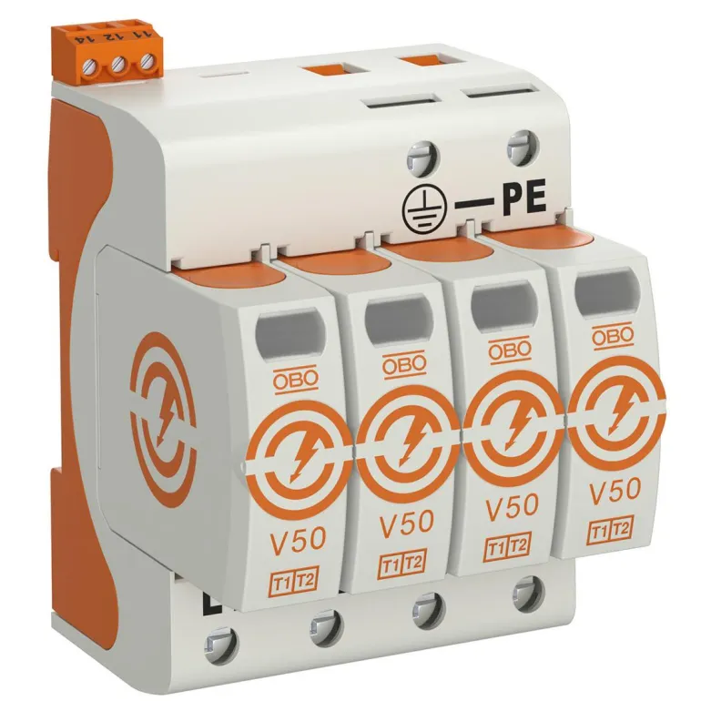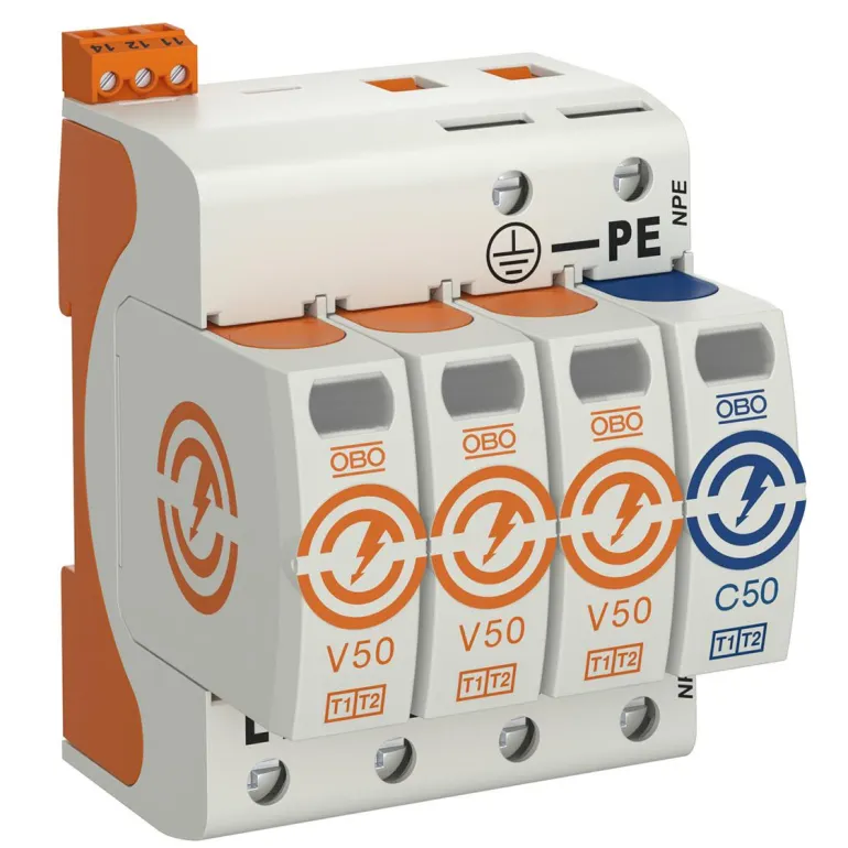 Ylijännitesuoja Kombi V50 maaseutualueille ja asennuksiin, joissa on salamansuojaus SSEN 62305:n mukaisesti.