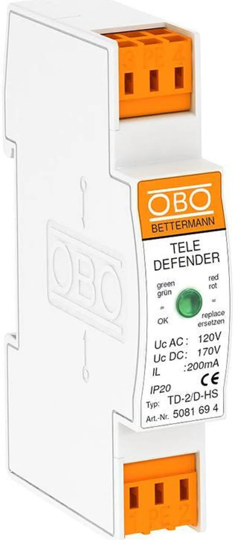Malliin E5271780: Tietoliikennesuoja, joka kestää 4 kuitua. Salamavirran purkauskyky 12,5 kA. Suurin kaistanleveys 100 MHz. Käytön osoittaminen punaisella ledillä, kun suoja on käytetty loppuun, ja vihreällä ledillä, kun suoja on OK. Nopeat liitäntäkiinnikkeet 0,14–0,75mm².