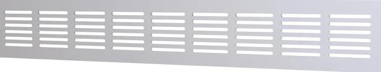 Ylivirtaussäleikkö, mitat 400 x 60 mm. Ilmansiirtoon esimerkiksi ovien, kaappien, seinien tai lämmöntuotantolaitteella varustettujen alueiden läpi.