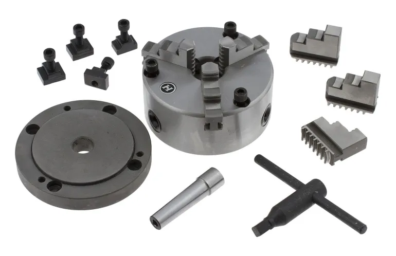 PELA 170663 on itsekeskittyvä 3-leukaistukka, jossa on laippa pyöreille syöttöpöydille. 200 mm malliin HV250.