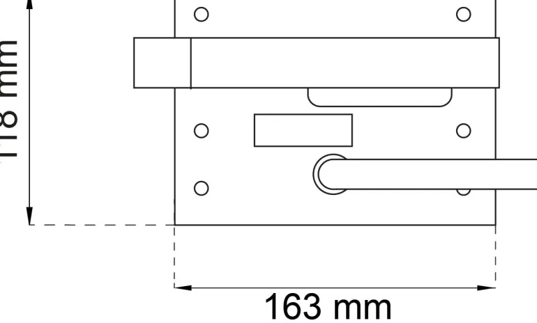 Teräksinen AD-lukko. Vasenkätinen. Toimitetaan täydellisenä, sis. avaimen, avainkilven ja vastaraudan. Oven maksimivahvuus 80 mm. Vain ulos avautuviin oviin. Mitat 160×118 mm.