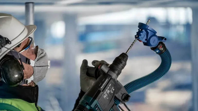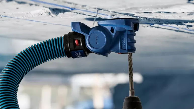 Bosch Expert SDS Clean -adapteri, joka helpottaa pölyn ja roskien poistamista jo porausvaiheessa. Voit vähentää keskeytyksiä työskentelyssäsi, pitää työmaan ilman entistä puhtaampana ja välttää toistuvat jälkisiivoukset poraustöiden jälkeen.