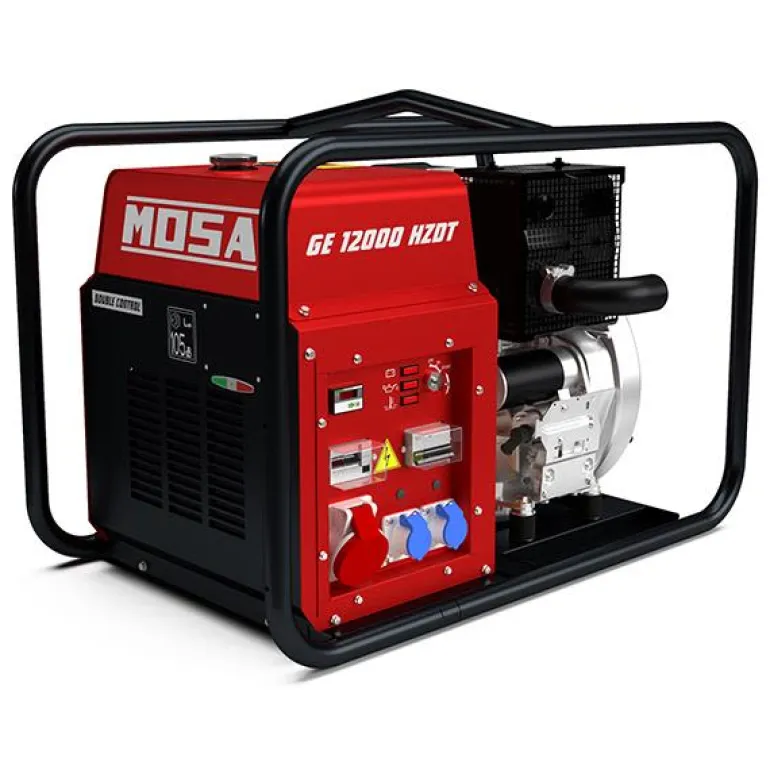 Kompakti aggregaatti GE 12000 HZDT on myös varustettu 18 litran polttoainesäiliöllä yli 7 tunnin jatkuvaan käyttöön, ja sitä on helppo kuljettaa millä tahansa vaunulla vain 220 kg painonsa ansiosta. Yhdistelmäjärjestelmän ansiosta generaattori voi toimittaa tarvittavan tehon, kun tarvitaan suuria kuormia. Rakenne on teräsrakenne, jossa moottori ja generaattori on asennettu tärinänvaimentimiin käyttöiän pidentämiseksi ja melun vähentämiseksi. Upotettu paneeli suojaa pistorasioita ja hallintalaitteita tahattomilta vaurioilta, kun taas putkimainen teräsrunko suojaa koko konetta. Ohjauspaneeli sisältää pistorasiat ja koneen ohjaimet, mukaan lukien ELCB-GFI, kytkimet ja lämpösammutuksen.