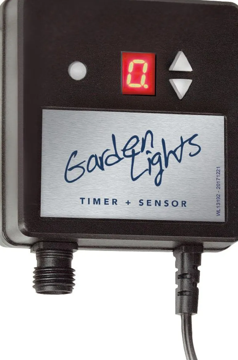 Garden Lights 4060090111 on digitaalinen ajastin ulkokäyttöön, 1-9 tunnin asetusaika, päälle/pois ja hämärätoiminto. Kytketään 2 m:n kaapelilla, jossa on ruuviliitäntä.