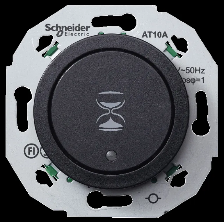 2-napainen elektroninen 10 A:n ajastin, joka voidaan säätää välillä 15/30 min ja 1, 2, 4 ja 8 tuntia. Vaatii nollajohtimen ja kiinnitetään ruuvilla.
