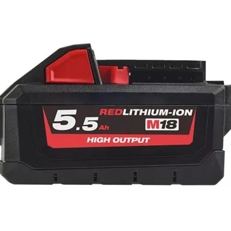 Milwaukee M18 HB5.5 on 18 V 5,5 Ah- akku, yhteensopiva Milwaukee M18- työkalujen kanssa. HIGH OUTPUT™- akku antaa jopa 50% enemmän tehoa.