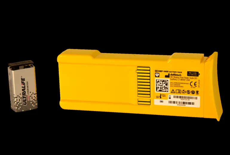Lifeline AED -defibrillaattorin akku. Jotta defibrillaattori toimisi, akku on vaihdettava säännöllisesti.