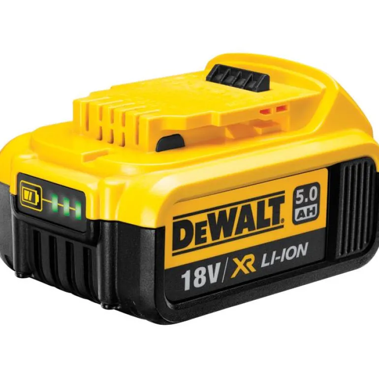 DEWALT 18V XR 5,0 Ah Li-Ion -akku, joka on yhteensopiva kaikkien DEWALT 18V XR Li-Ion -työkalujen kanssa.