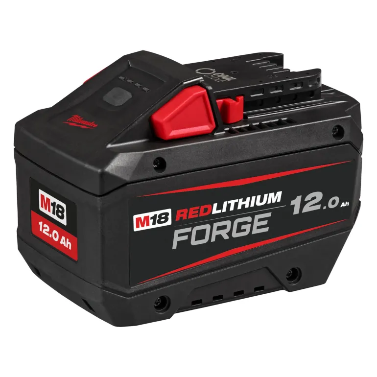 MILWAUKEE M18™ FORGE™ 12,0 Ah -akku, joka tuottaa 50 % enemmän tehoa kuin HIGH OUTPUT™ 12,0 Ah -akku ja latautuu 80 prosenttiin 35 minuutissa ja 100 prosenttiin 45 minuutissa M18™ kaksipaikkaisella pikalaturilla. Aktiivinen COOL-CYCLE™ -jäähdytysteknologia jäähdyttää akun nopeasti. REDLITHIUM™ FORGE™ tuottaa parhaimman tehon, nopeimmat lataukset ja pisimmän käyttöiän REDLITHIUM™-akkuvalikoiman sisällä. Suunniteltu kestämään erilaisia työmaa-, sää- ja ympäristöolosuhteilta. Todella pitkä käyttöikä ja erinomainen suorituskyky. Kestävä kotelo on suunniteltu antamaan parempi suoja yleisiä öljyjä, liuottimia ja rasvoja vastaan. Parannettu virtamittari on luettavissa suorassa auringonvalossa. REDLINK™-älykkyys tuottaa optimaallisen virransiirron ja kommunikaation työkalun, akun ja laturin välillä. Yhteensopiva kaikkien M18™ -työkalujen kanssa.