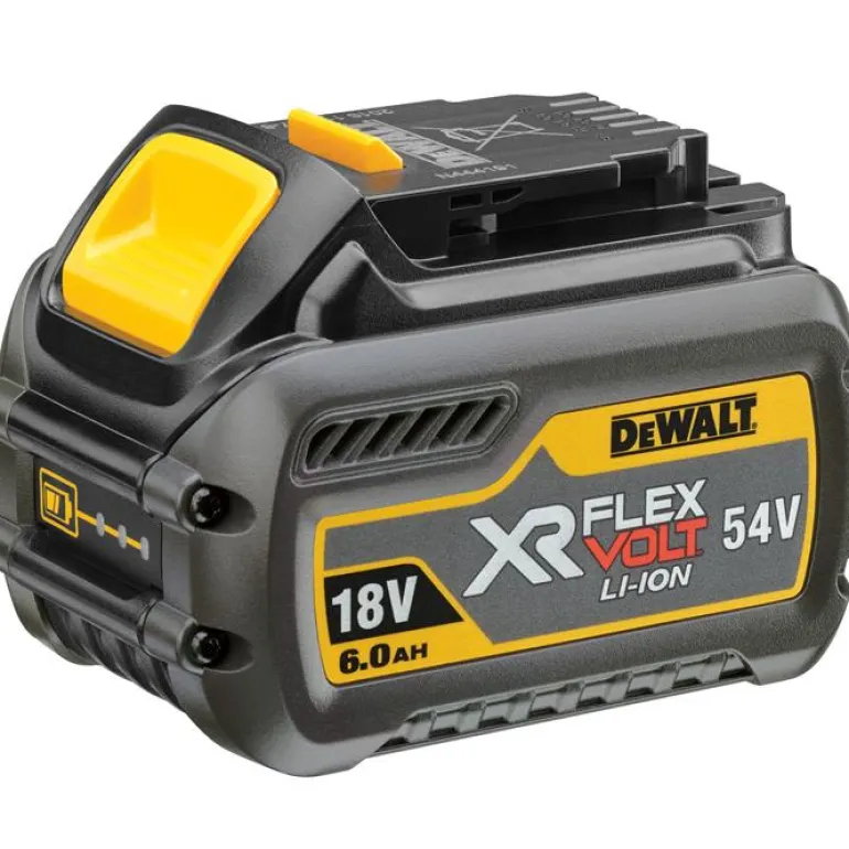 DEWALT 54V XR FLEXVOLT -järjestelmän akkutyökalut mahdollistavat johdottoman työskentelyn raskaammissa sovelluksissa. Ainutlaatuinen XR FLEXVOLT -akku vaihtaa käytetyn työkalun mukaan automaattisesti jännitettä 54 ja 18 voltin välillä, mikä tekee siitä yhteensopivan sekä DEWALT 18V XR- että 54V XR -työkalujen kanssa. Samalla akulla voit siis työskennellä suuritehoisilla 54V XR -akkutyökaluilla tai siirtyä käyttämään 18V XR -työkaluja, jolloin saat pidemmän käyttöajan pienemmällä energiankulutuksella. 54V XR FLEXVOLT -akku on myös taaksepäin yhteensopiva kaikkien Dewalt 18V XR -työkalujen kanssa.