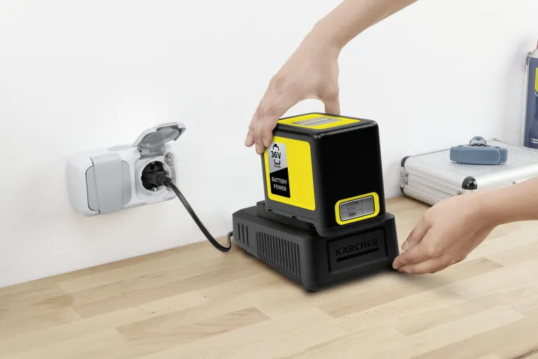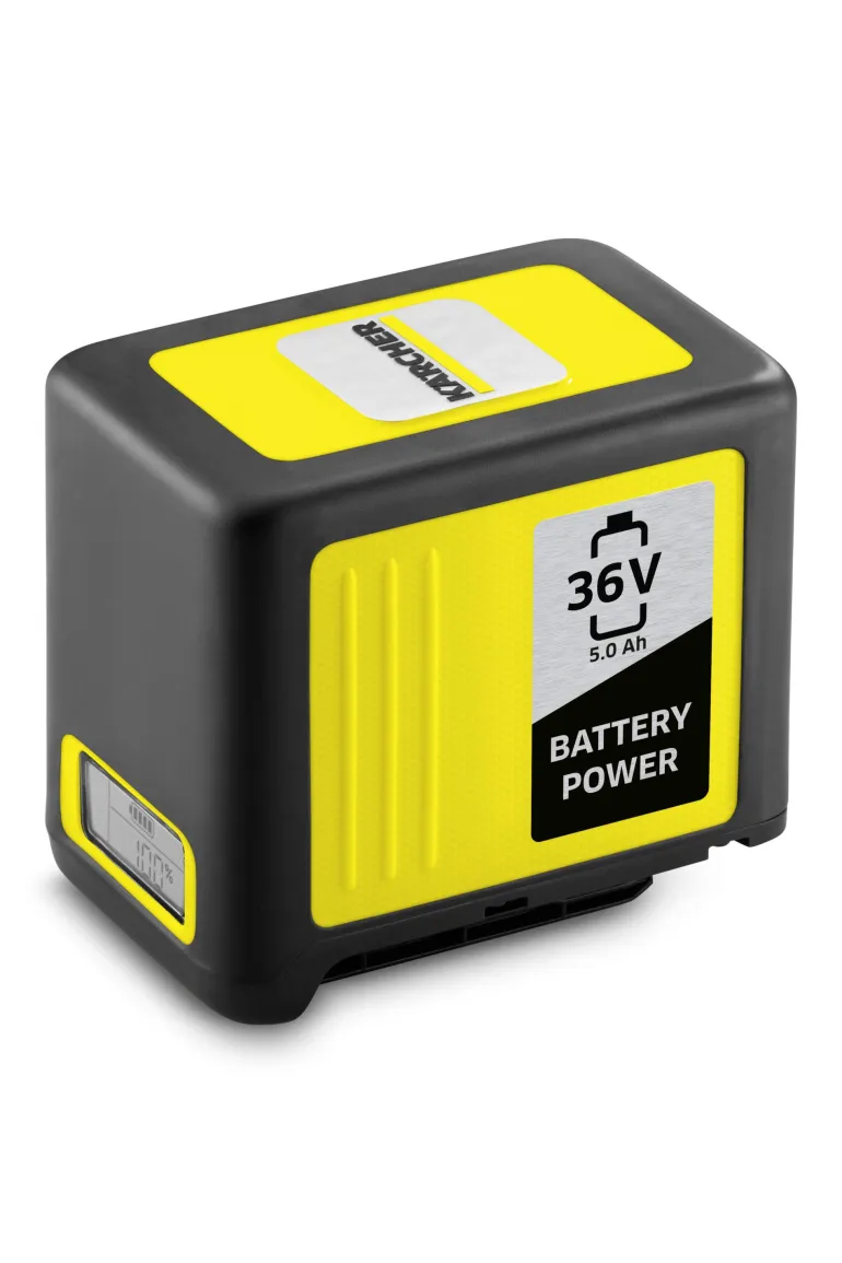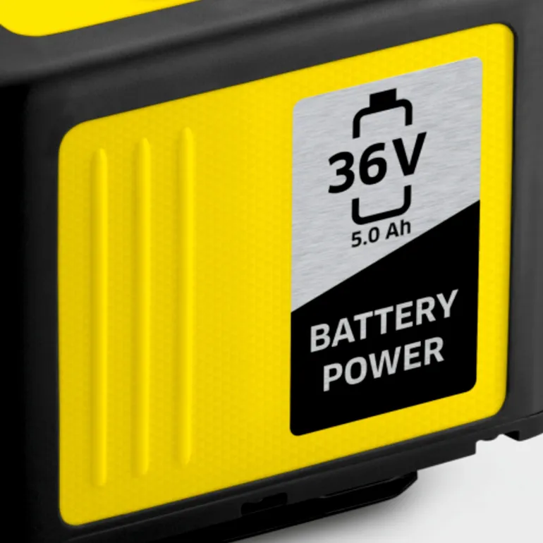 Kärcher 24450310 on 36 V / 5,0 Ah -vaihtoakku, joka on yhteensopiva kaikkien Kärcher 36 V -akkulaitteiden kanssa. Litiumioniakku takaa tasaisen toimintatehon varauksen tasosta huolimatta ja säilyttää varaustason myös varastoinnin ajan. Vähäinen itsepurkautuvuus ja ei muistivaikutusta.