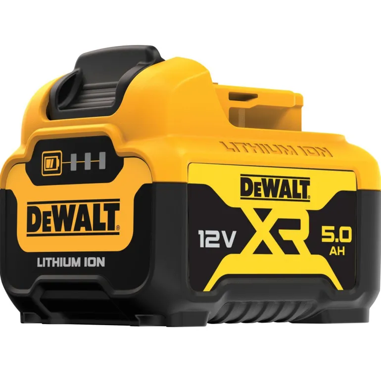 12V XR 5Ah -akku, joka maksimoi Dewalt 12V XR -työkalujen suorituskyvyn. Akun kapasiteetti on yli kolminkertainen verrattuna aiempiin 12V XR -akkuihin, ja se tarjoaa pidemmän käyttöiän, kun sitä käytetään kaikkien 12V XR -työkalujen kanssa, mutta säilyttää samalla kevyen ja kompaktin rakenteen.