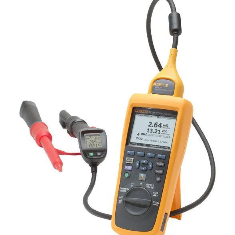 Fluke BT510 akkuanalysaattori on ihanteellinen testaustyökalu yksittäisten kiinteiden paristojen tai akkuyksiköiden huoltoon, vianmääritykseen ja suorituskyvyn testaamiseen kriittisissä varaenergiaratkaisuissa. Intuitiivinen käyttöliittymä, kompakti muotoilu ja kestävä muotoilu – optimaalinen suorituskyky, testaustarkkuus ja luotettavuus. Analysaattorissa on erilaisia akkutestitoimintoja tasavirtajännitteen ja resistanssin mittauksesta automaattisilla jousitoimintotesteillä suoritettaviin kuntotesteihin ja testianturin integroituun infrapunalämpötilan mittausjärjestelmään.