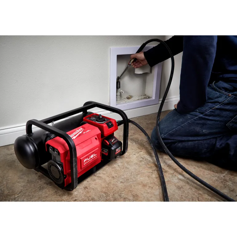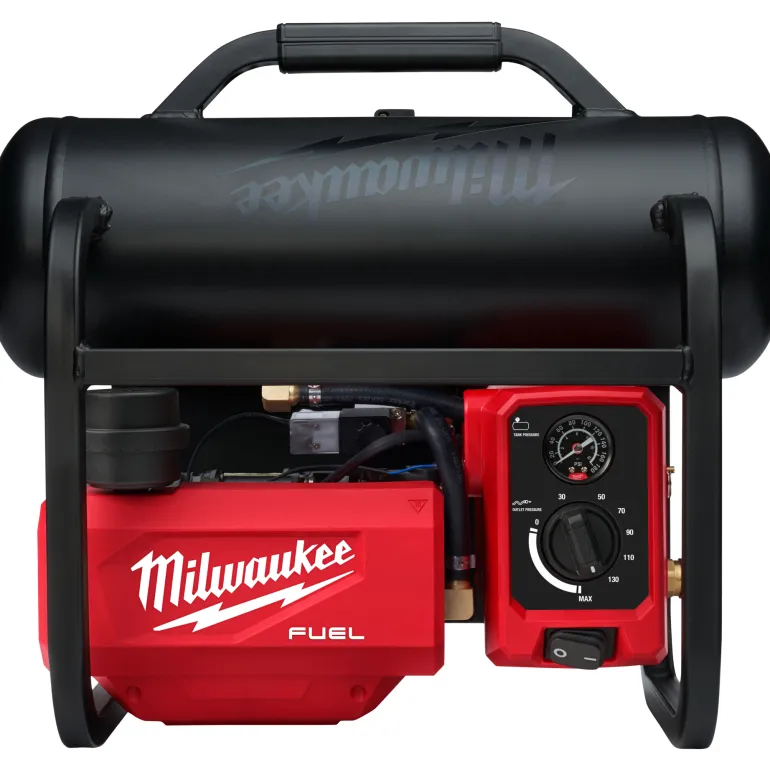 M18 FUEL -ilmakompressori hiiliharjattomalla POWERSTATE-moottorilla tuottaa 9,31 baarin maks. ilmanpaineen ja 34 l/m 6,1 baarissa 7,6 litran säiliöllä, mikä tuottaa tarpeeksi tehoa yleisimpiin naulaus- ja niittaustöihin. Vain 68 dB(A) tekee työkalusta yhden markkinoiden hiljaisimmista