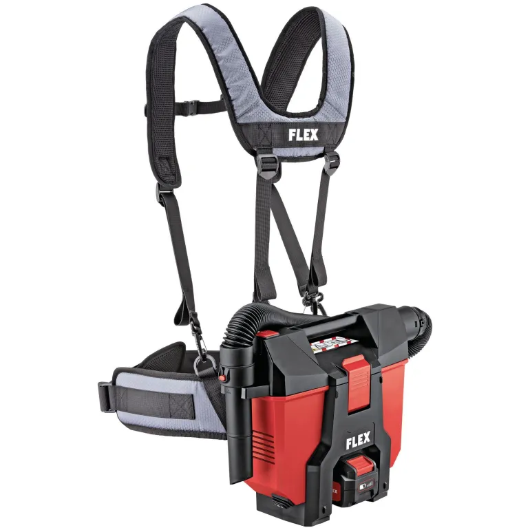 Kompakti ja kevyt akkutoiminen märkä-/kuivaimuri Flex VC2LMC Solo 18 V, jonka mukana sisältyvät valjaat helpottavat käyttöä ja kuljetusta erilaisissa ympäristöissä. Tehokas turbiini takaa korkean imutehon ja alipaineen, ja suodattimen puhdistus onnistuu helposti manuaalisella toiminnolla.