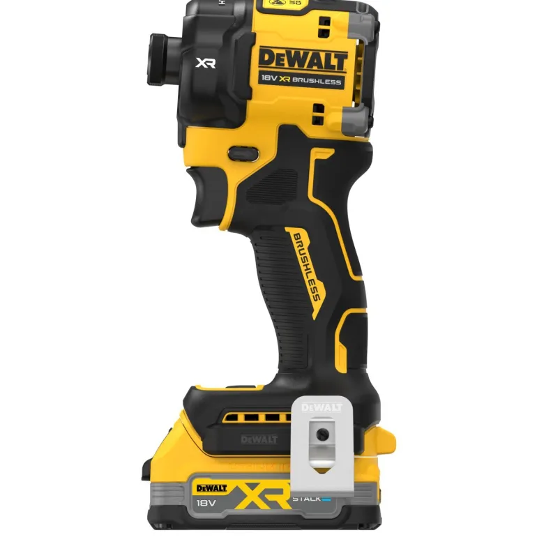 18V XR hiiliharjaton hydraulinen akkukäyttöinen iskevä ruuvinväännin, jonka hiiliharjaton moottori tarjoaa korkean suorituskyvyn, pidentää työkalun käyttöikää ja mahdollistaa paljon lyhyemmän muotoilun. Öljytäytteinen hydraulinen mekanismi mahdollistaa matalamman äänitason käytön aikana.