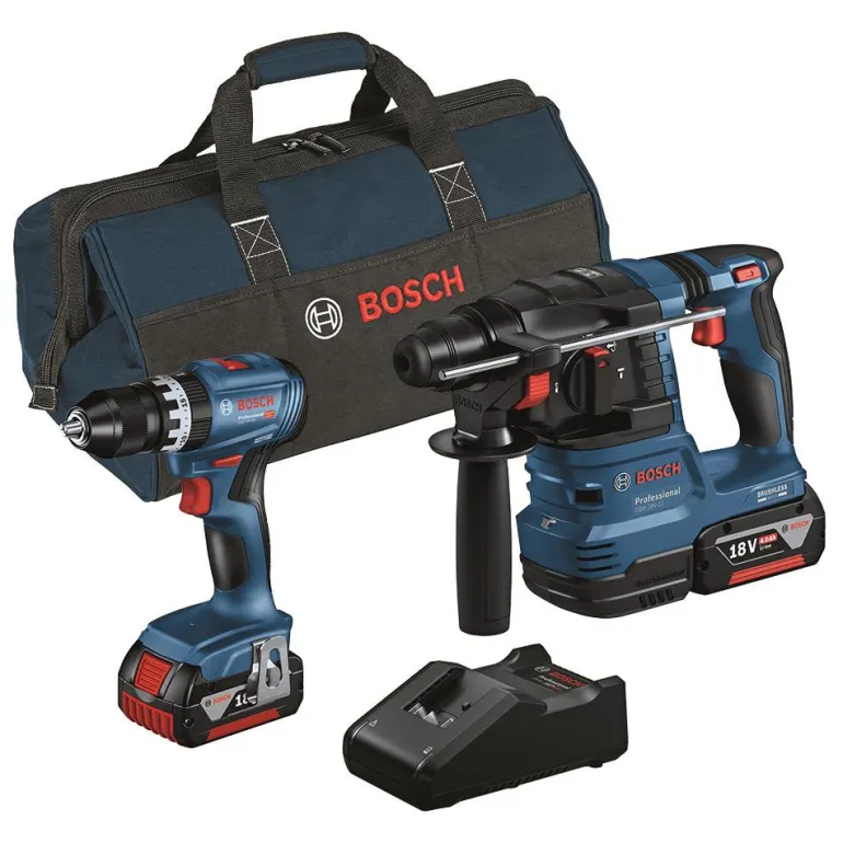 Boschin 18 V-työkalusarja, joka sisältää GSB 18V-45 Professional-akkuiskuporakoneen, GBH 18V-22 Professional-akkuporavasaran (SDS plus), kaksi GBA 18V 4.0 Ah-akkua, pikalaturin GAL 18V-40 Professional ja Bosch Professional -työkalulaukun. Ammattiluokan suorituskykyinen ja vikasuojattu työkalupaketti tehokkaaseen työskentelyyn.