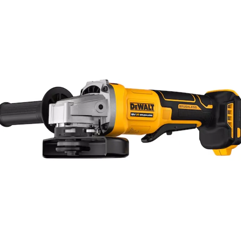18V XR 125 mm DCG408 akkukulmahiomakone hiiliharjattomalla moottorilla ja painokytkimellä (ei portaaton nopeudensäätö, Paddle Switch-painokytkin – virta katkeaa, kun ote irrotetaan). Kuormittamaton kierrosnopeus 9000 rpm, sopii erilaisiin sovelluksiin esim. metallin katkaisu ja hionta, kiillotus ja erilaisten pintojen hionta.