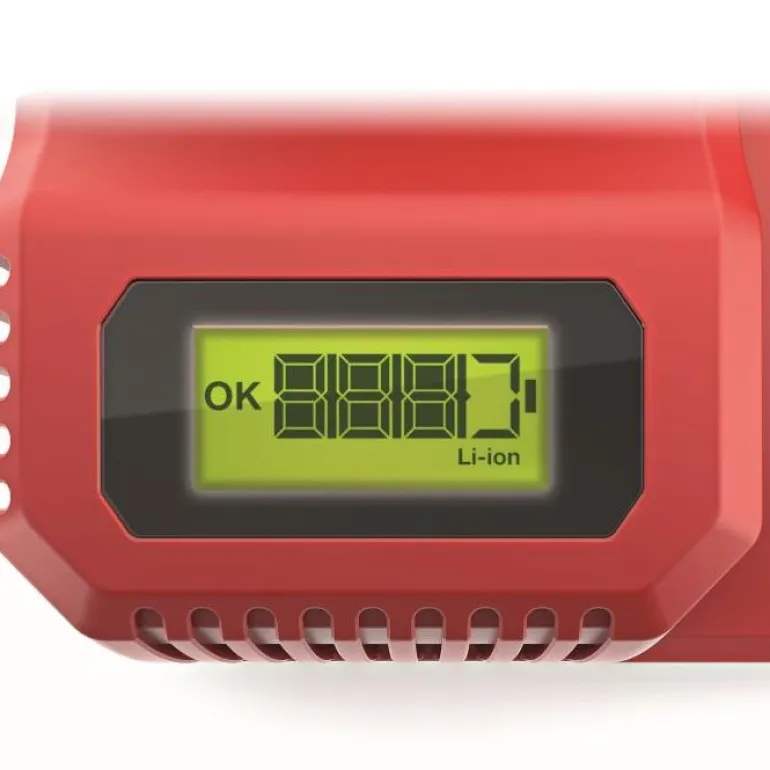 Akkulaturi FLEX Li-ion-akuille 10,8 V ja 18 V. Iso LCD-näyttö akun diagnostiikkaa ja varaustilan näyttöä varten.