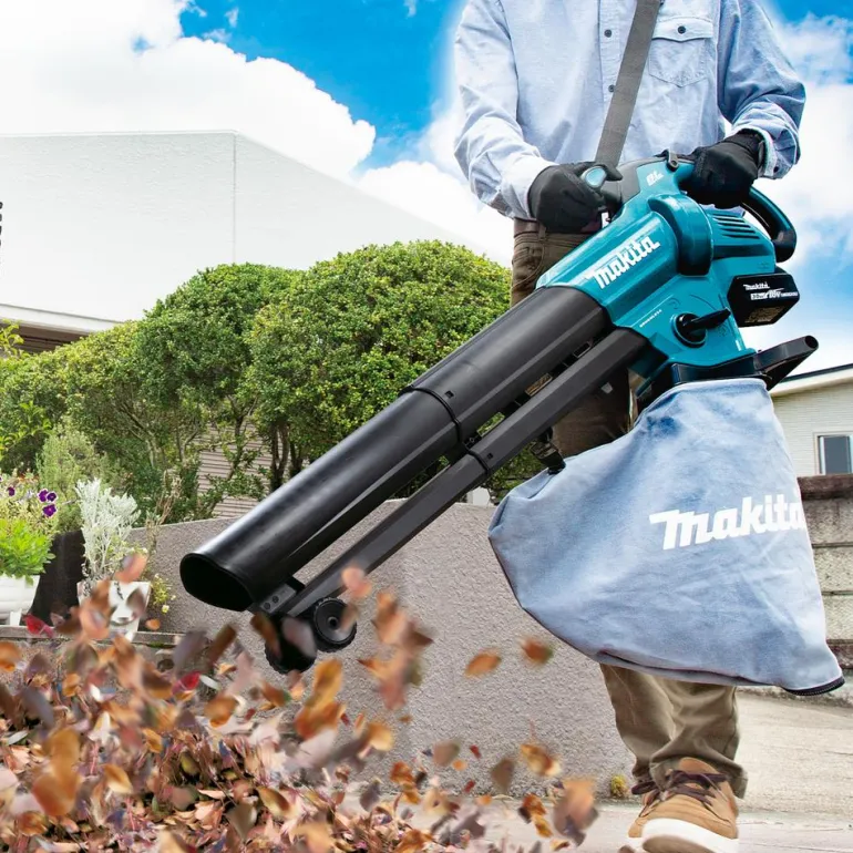 Makita DUB187 on akkulehtipuhallin erinomaisella käsiteltävyydellä ja tehokkaalla hiiliharjattomalla moottorilla. Puhallin on kaksitoiminen, yhdellä vivun liikkeellä ja keräyspussi paikalleen asettamalla puhallin muuttuu imuriksi. Laitteen mukana toimitetaan imuvarustus lehtien keräämistä varten. Laite silppuaa imemänsä lehdet, joten ne vievät vähemmän tilaa ja maatuvat nopeammin. Puhaltimen pyörimisnopeutta voidaan säätää portaattomasti kytkimellä tai kierrosnopeus voidaan asettaa halutulle tasolle vakionopeudensäätimellä, jolloin kytkintä ei tarvitse painaa.