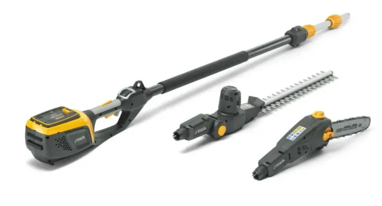 STIGA MT 500e Kit on kevyt ja tehokas johdoton akkumonitoimilaite, joka yhdistää teleskooppisen runkoputken, pensasleikkuri- sekä oksasahalaitteen. Sen avulla voit helposti viimeistellä ja karsia vaikeasti tavoitettavissa olevia pensaita ja puita. Korkealle ylettyvä akkukäyttöinen pensasleikkuri ja oksasaha, joka mahdollistaa meluttoman ja pakokaasuista vapaan käytön. Tehokkaan 48V, 2 Ah -akun ja pensasleikkurin kestävän laserhiotun kaksoisterän sekä oksasahan 25 cm laipan ansiosta MT 500e Kit -monitoimilaite leikkaa sujuvasti. Jotta yllät korkeisiin puihin ja pensaisiin on tässä monitoimilaitteessa 75 cm teleskooppinen jatkovarsi, minkä avulla yllät pensasleikkurilla jopa 4,30 metrin korkeuteen ja oksasahalla jopa 4 metrin korkeuteen (ilmoitettu pituus perustuu ihmisen keskipituuteen) . Oksasahan laipan korkealaatuinen terä minimoi takapotkut. Laite on myös mukava käyttää ja käytännöllinen, sen pensasleikkurin 112° kääntyvä, 6-portainen leikkuupää mahdollistaa työskentelykulman asettamisen siten, että se minimoi rasituksen käyttäjälle. Ja kahvan sekä runkoputken kosketuspinnan pehmeän kumipinnan, sekä olkahihnan kiinnityskoukun ansiosta työskentelet vahingoittamatta käsiäsi ja raajojasi. Turvallista, mukavaa ja tarkkaa leikkausta varten MT 500e -oksasahalaitteessa on terän alla oksia vasten nojaava tukipuskuri.