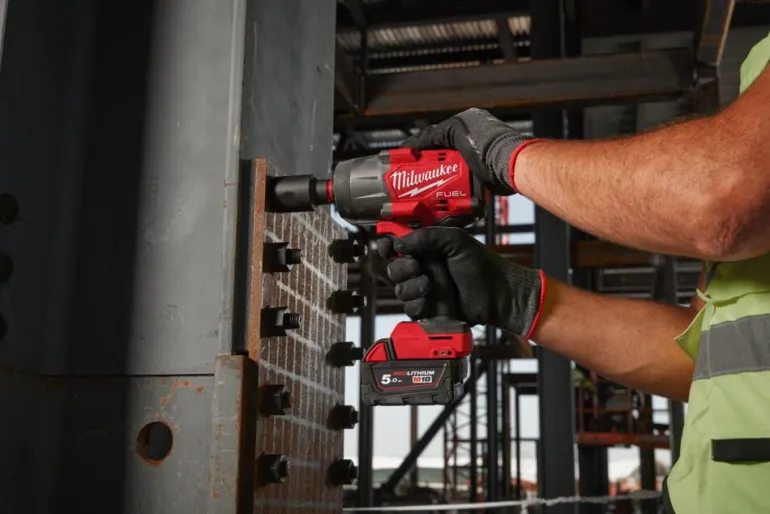 Milwaukee M18 FHIW2F12-502X on M18 FUEL™ ½″ iskevä akkumutterinväännin kitkarenkaalla. Korkeavääntöinen M18 FUEL™ iskevä mutterinväännin tuottaa 1491 Nm vääntömomentin ja 2034 Nm avausmomentin kompaktissa 193 mm koossa.