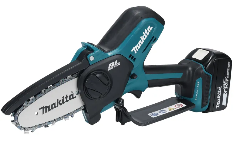 Makita DUC101 on kompakti akkuoksasaha, jossa on 10 cm:n laippa, automaattinen teräketjun voitelu ja elektroninen jarru. 8 m/s ketjunopeus helpottaa oksien ja pienemmän puutavaran sahaamista.
