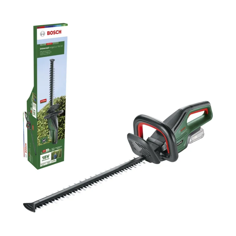 Tehokas akkupensasleikkuri harjattomalla moottorilla, joka mahdollistaa optimaaliset leikkuutulokset. Boschin harjattomalla moottorilla varustettu 18V UniversalHedgeCut 18V-50 on tehokas ja erittäin pitkäikäinen akkupensasleikkuri. Sen keveys vähentää käsien rasitusta, mikä mahdollistaa pensaiden vaivattoman leikkaamisen myös pitkäkestoisissa töissä. UniversalHedgeCut 18V-50 on optimaalinen valinta keskikokoisten pensaiden leikkaamiseen; sillä leikkaat kätevästi esimerkiksi havupuu-, likusteri-, laakeri- ja pyökkipensasaidat ja jopa 20 mm:n paksuiset oksat.
