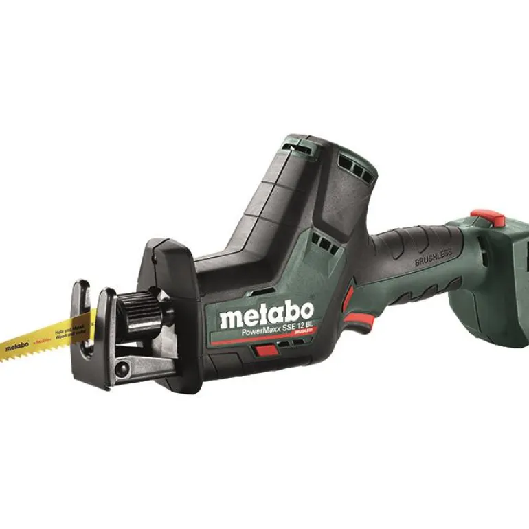 Metabo PowerMaxx SSE 12 BL on kevyt ja erittäin kätevä 12 V:n akkupuukkosaha, joka soveltuu myös hyvin vaikeapääsyisiin kohteisiin. LED-työvalo ja ainutlaatuinen hiiliharjaton moottori: iskunopeus 0-3000/min (joutokäyntinopeudella). Puukkosahan terä on käännettävissä 180°: helpottaa työskentelyä päänkorkeuden yläpuolella.