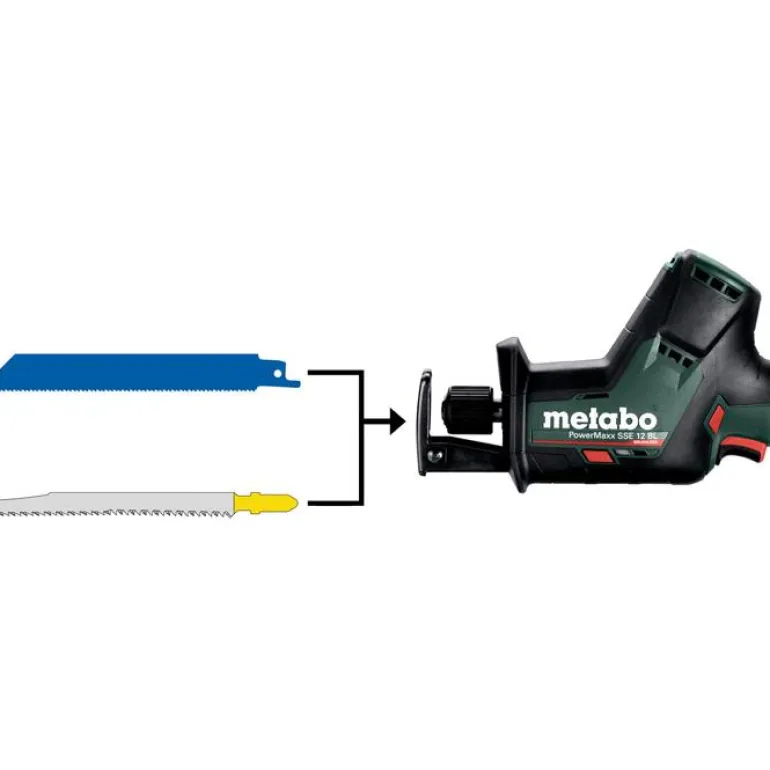 Metabo POWERMAXX SSE 12 BL SOLO on kevyt ja kätevä 12 V:n akkupuukkosaha, joka soveltuu erityisen hyvin vaikeapääsyisiin kohteisiin. Ainutlaatuinen hiiliharjaton moottori: iskunopeus 0 – 3000/min (joutokäyntinopeudella). Nopea työstö ja maksimaalinen tehokkuus. Sahanterää voidaan kääntää 180°, mikä helpottaa pään korkeuden yläpuolella työskentelyä. LED-työvalaisin sahauskohteen valaisuun. Ultra-M-teknologia: paras suorituskyky, tarkka lataus sekä kolmen vuoden takuu akkupaketille.
