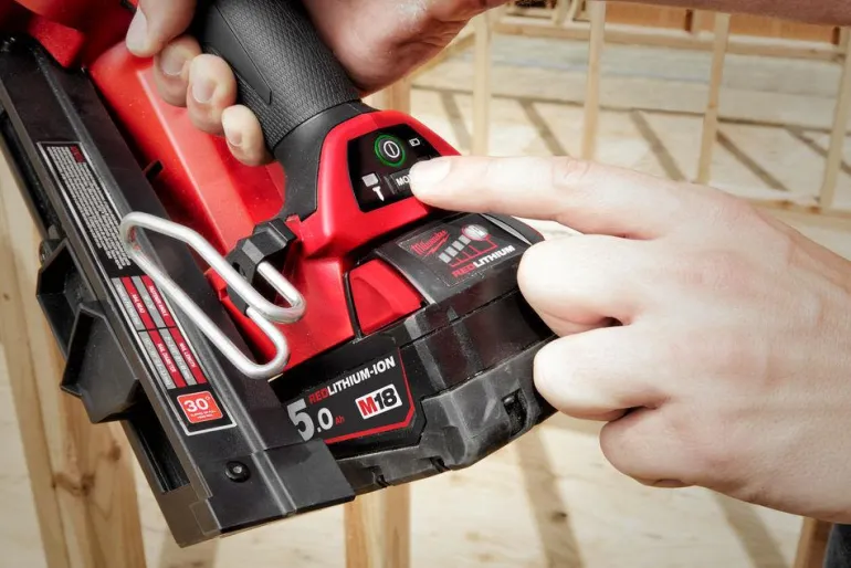 M18 FUEL -runkonaulain tuottaa voimaa upottaa naulat kovapuuhun. Ready to Fire -teknologia. Ei tarvitse kaasupatruunoita. Kerta- ja sarjalaukaisutoiminnot. Työkaluton syvyyden säätö. Työkalu estää naulojen laukaisemisen, jos makasiinissa ei ole jäljellä nauloja. Laukaisee jopa 700 naulaa yhdellä REDLITHIUM 5,0 Ah -akun latauksella.