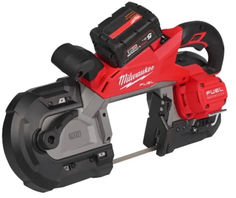 MILWAUKEE M18 FUEL™ -vannesaha, jonka 4-tilan nopeusvalikko ja portaaton nopeuskytkin tekevät vannesahasta ihanteellisen ruostumattoman teräksen ja alumiinin työstämiseen. Maks. ⌀ 127 x 127 mm sahauskapasiteetti. Ohut täysmetallinen mottorikotelo ja LED-työvalo. Vannesahan suojukset suojaavat käyttäjää. Työkaluton terän lukitusmekanismi nopeuttaa ja helpottaa terän vaihtamista. Lukittava ja säädettävä kenkä. Metallinen ripustuskoukku helpottaa säilytystä työmaalla. Mukana 2 x 5,0 Ah REDLITHIUM™ -akkua, 59 min. M12-18 FC -pikalaturi ja laukku.