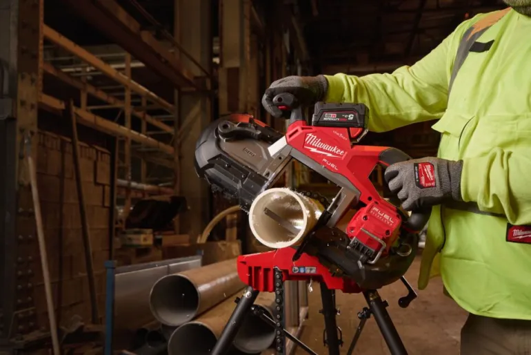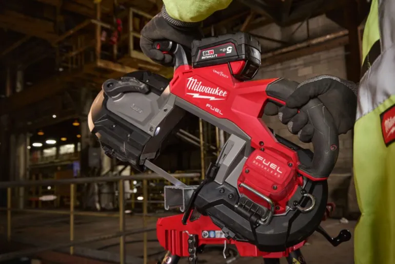 Milwaukee M18 FUEL™ ONE-KEY™ -akkuvannesaha kaksoisliipaisimella. Työkalussa on 4-tilan nopeusvalikko ja portaaton nopeuskytkin, jotka tekevät vannesahasta ihanteellisen ruostumattoman teräksen ja alumiinin työstämiseen. Suuri 127 x 127 mm sahauskapasiteetti. Ohut täysmetallinen moottorikotelo ja LED-työvalo. Lukittava ja säädettävä kenkä. Vannesahan suojukset suojaavat käyttäjää. Työkaluton terän lukitusmekanismi nopeuttaa ja helpottaa terän vaihtamista. Metallinen ripustuskoukku helpottaa säilytystä työmaalla. ONE-KEY™-työkaluseuranta ja -turvallisuustoiminnallisuus tarjoaa ilmaisen pilviteknologialla toimivan työkaluhallinta-alustan, joka mahdollistaa työkalujen etälukituksen. FUEL™ yhdistää kolme Milwaukee-teknologiaa: hiiliharjattoman POWERSTATE™-moottorin, REDLITHIUM™-akun ja REDLINK PLUS™ -elektroniikan, mitkä tuottavat enemmän voimaa, käyttöaikaa ja -ikää. Paino akun kanssa 5,8 kg (M18 B5). Runko ilman akkua ja laturia. Sisältää laukun.